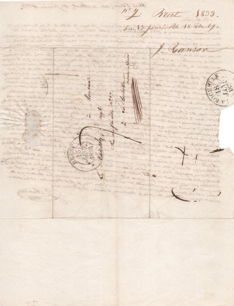Lettre du 13 janvier 1833 de Jean Ranson à Monsieur E. Ranson neg’ rue chef de ville n°37 à La Rochelle Charente Inférieure