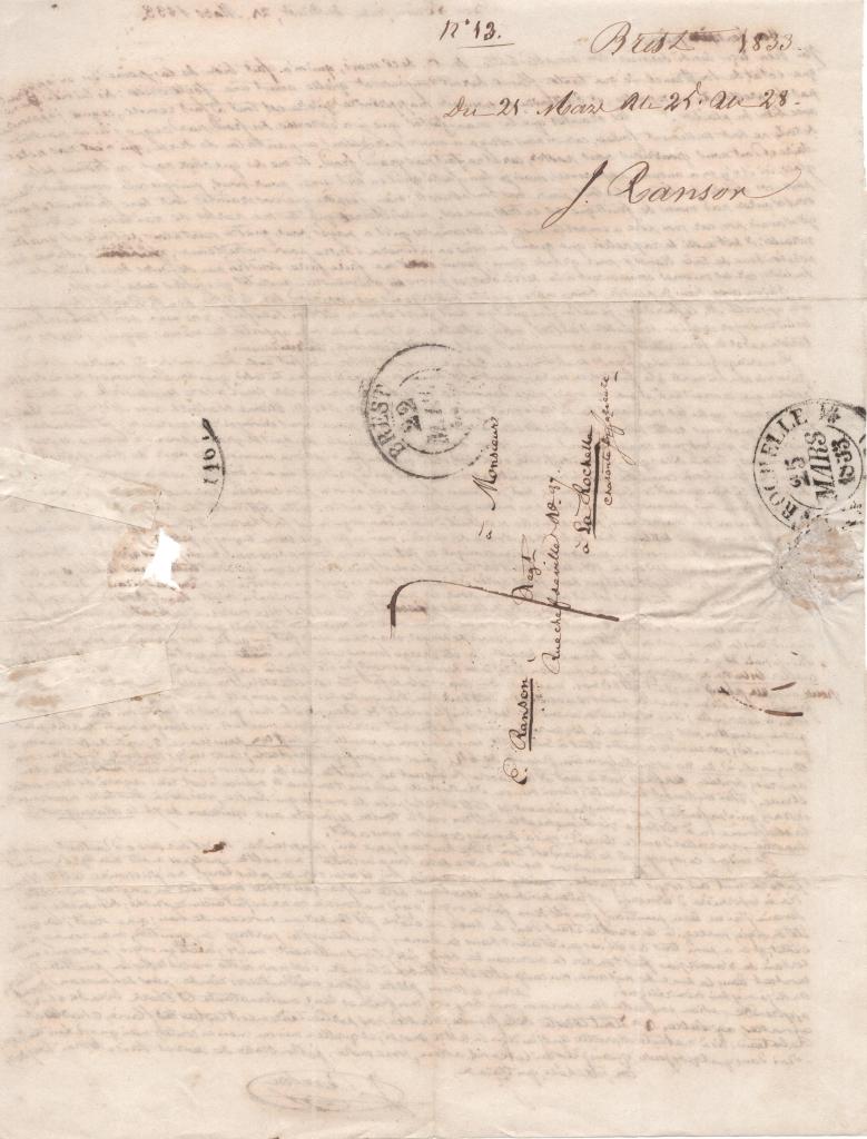 Lettre du 21 mars 1833 de Jean Ranson à sa mère