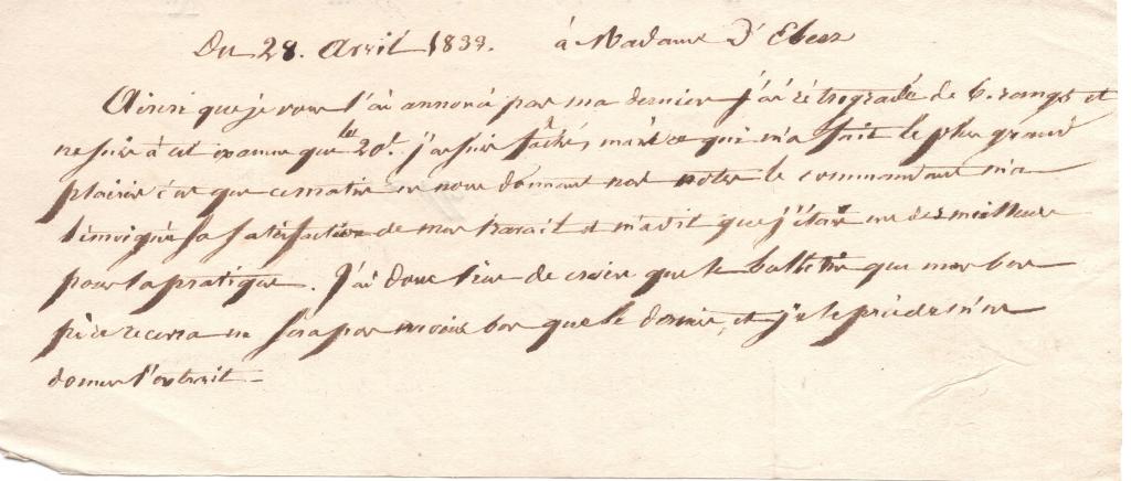 Ainsi que je vous l’ai annoncé par ma dernière, j’ai été rétrogradé de 6 rangs et ne suis à cet examen que le 20°. J’en suis fâché, mais ce qui m’a fait le plus grand plaisir, c’est que ce matin en nous donnant nos notes le commandant m’a [témoigné] sa satisfaction de mon travail et m’a dit que j’étais un des meilleurs pour la pratique. J’ai donc lieu de croire que le bulletin que mon bon père recevra ne sera pas moins bon que le dernier, et je le prie de m’en donner l’extrait.