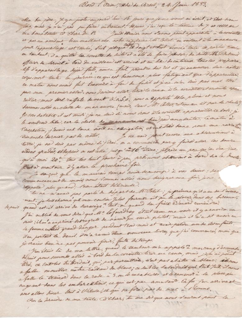 Bord l’Orion, rade de Brest, 24 juin 1833